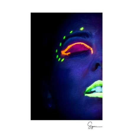 Esta sessão utilizou a técnica de maquiagem com tintas reagentes a luz negra aplicada na modelo Sandra Palaoro pela maquiadora Carol Campomar.